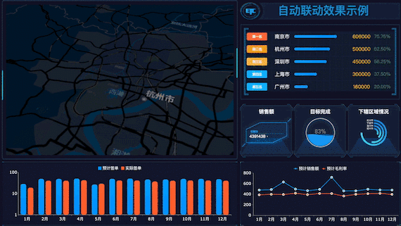 - 支持業(yè)務(wù)互動,包括不限層次的鉆取、多維度的聯(lián)動分析、輪播時自動聯(lián)動其他組件等,協(xié)助您更好的發(fā)現(xiàn)并分析業(yè)務(wù)問題
